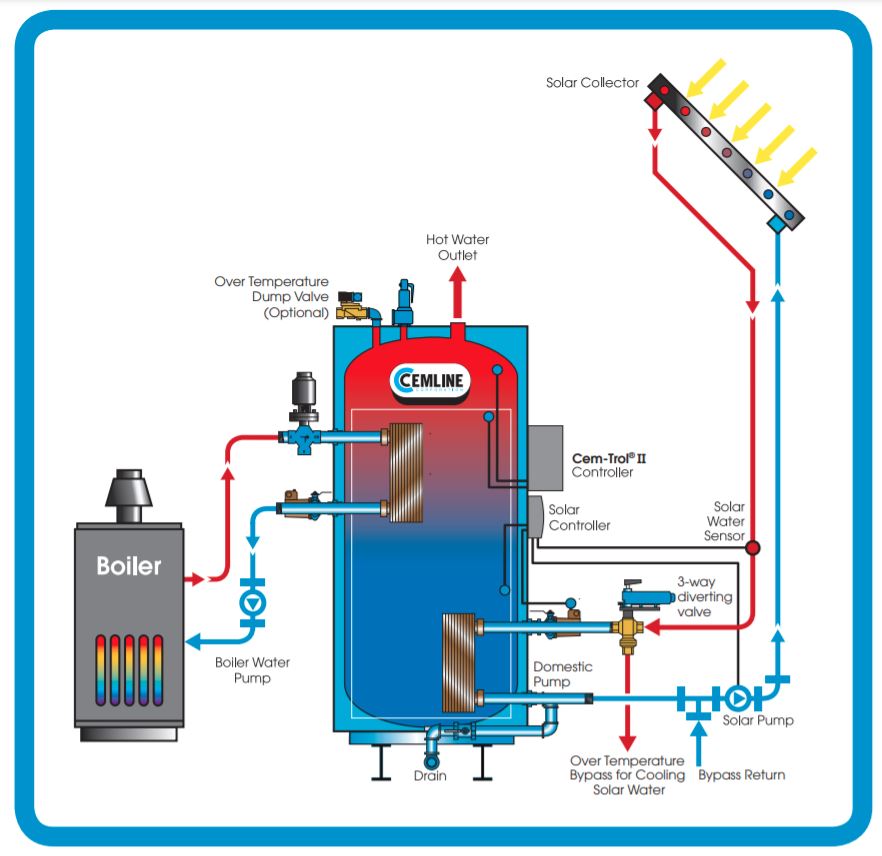 | Cemline | SW | solar combined with any: electric steam hydronic condensing or non-condensing |